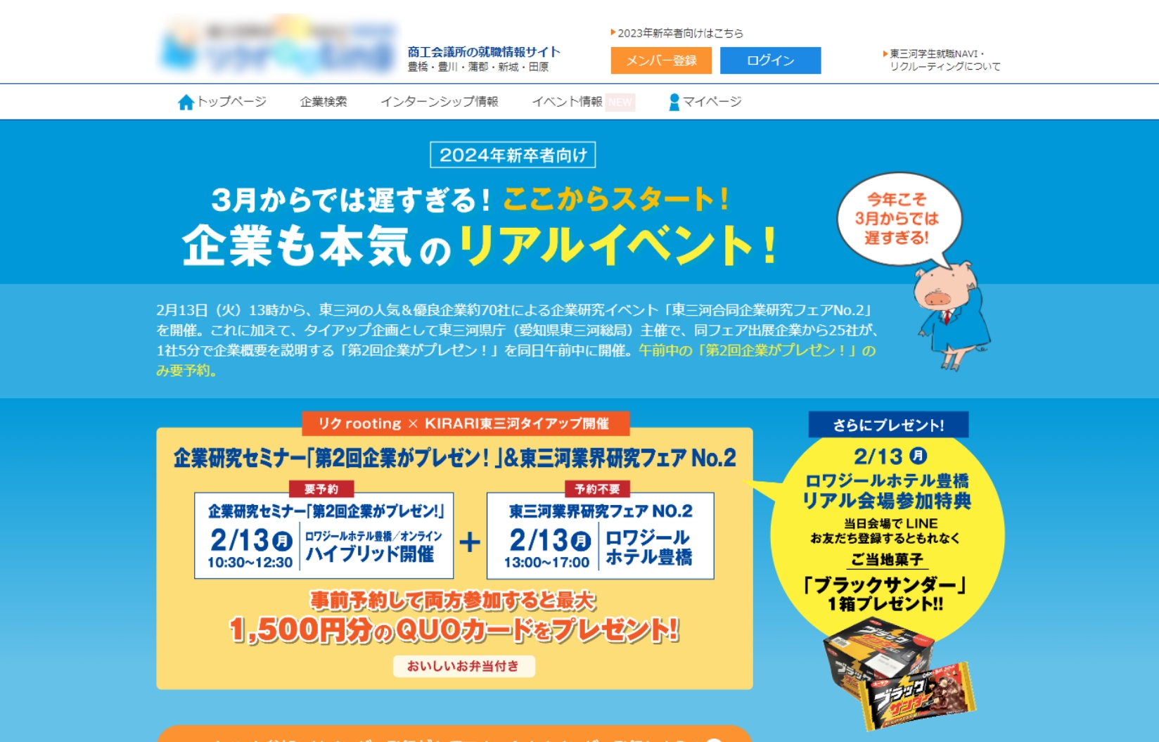 東三河に特化した就職情報サイトの開発を担当しました。企業情報やインターンシップの検索、会員登録、説明会へのエントリーが可能です。