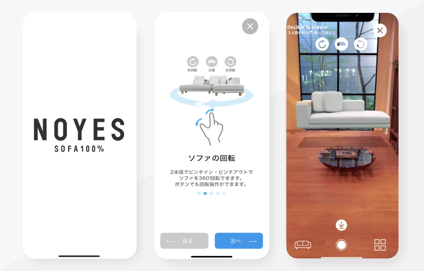 好みのソファを選択し、自分の部屋にソファを設置したシミュレーションがARで行えます。 ソファの向きを変えたり、スクリーンショットを保存することも可能なアプリです。 また、マーカーレスARなのでマーカーを...